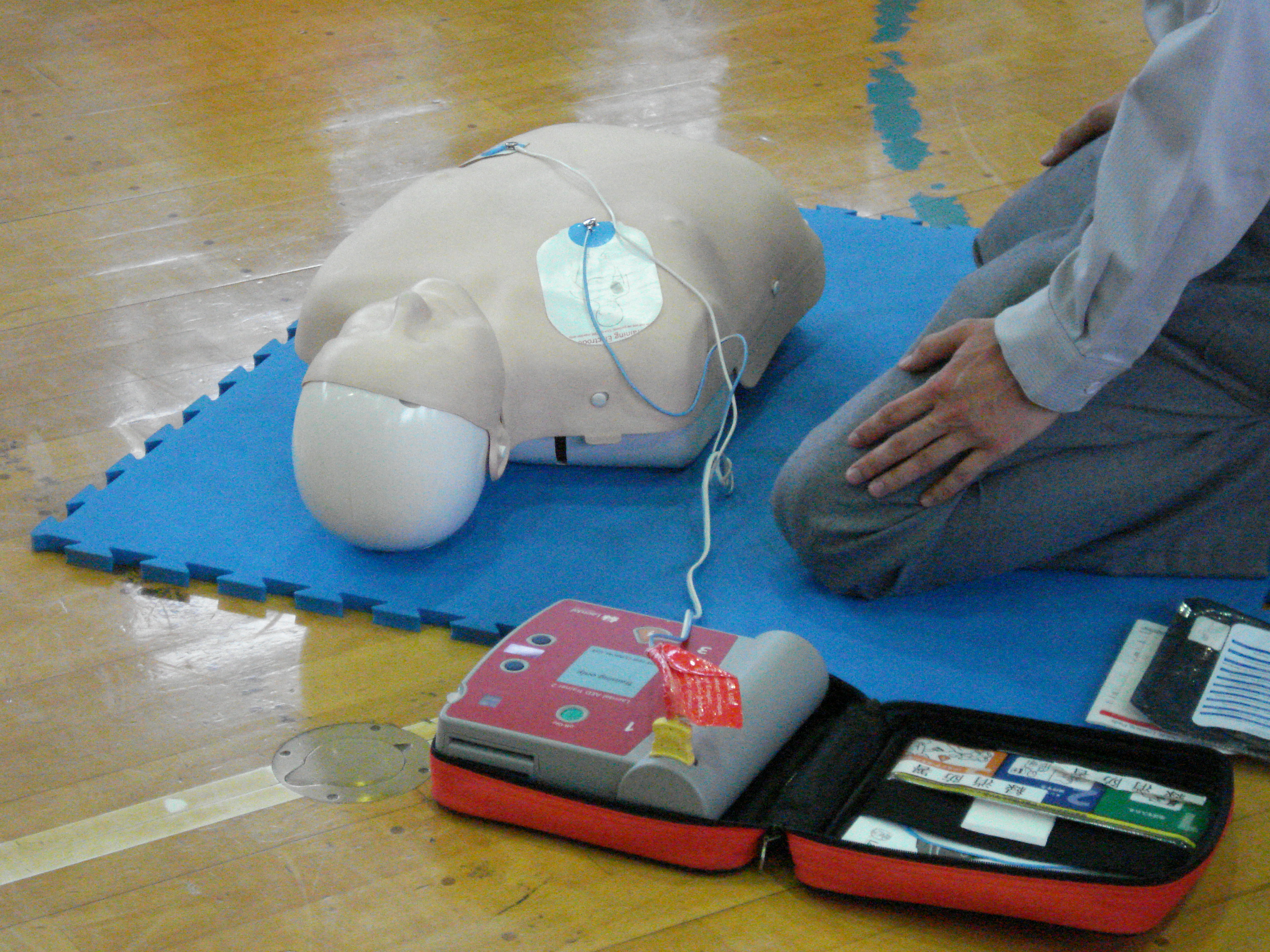 さらに、今年は親子サッカー終了後に体育館へ移動し、AED講習会を開催しました。